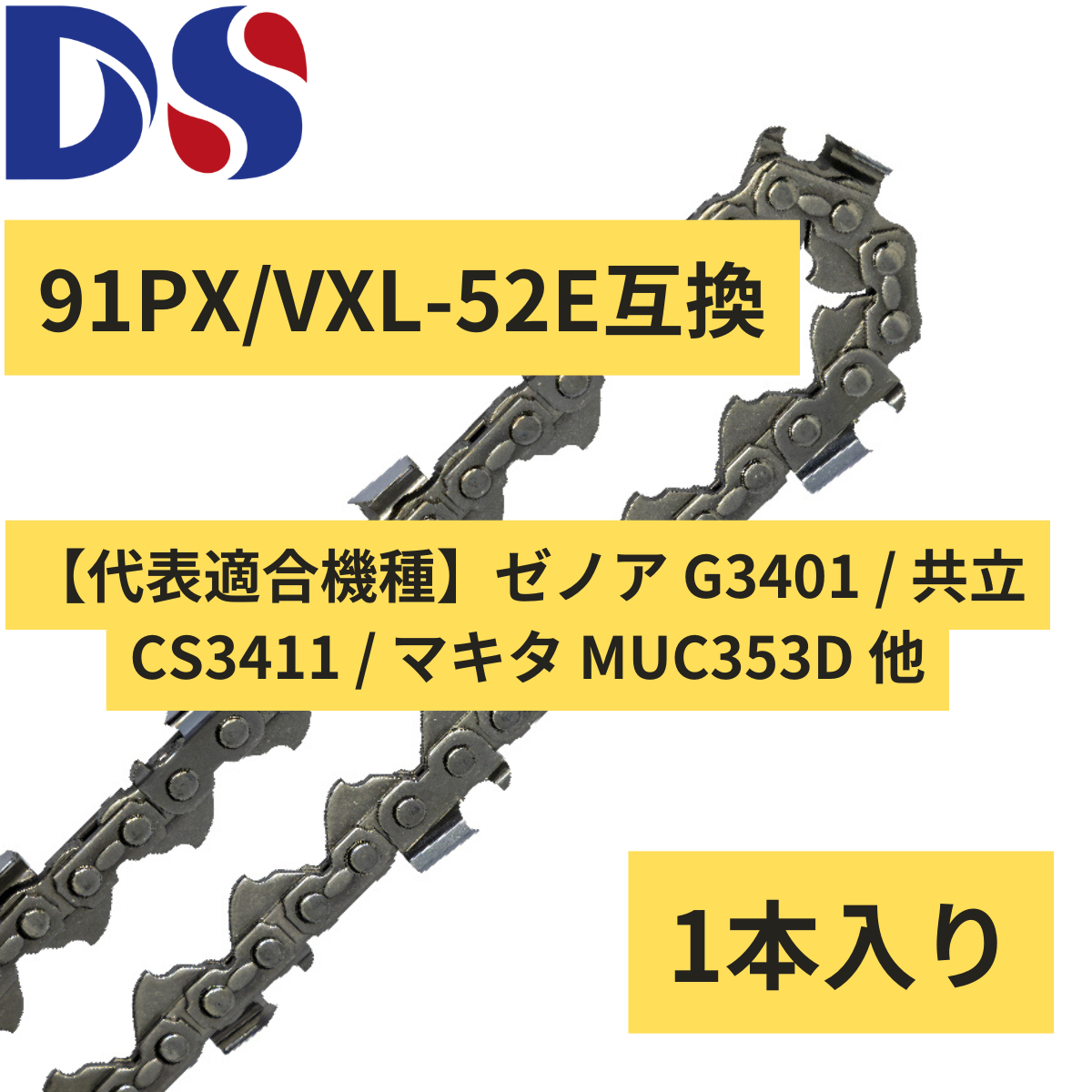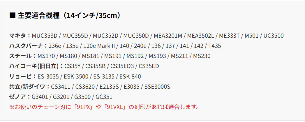DSソーチェーン A1FT-C-52E は、マキタ MUC353D やゼノア・共立の主要35cm(14インチ)機に完全対応。